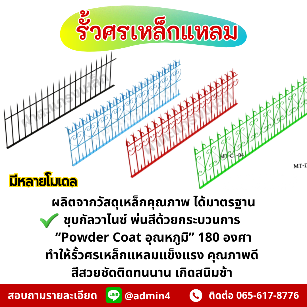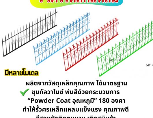 - ผ่านการพ่นสีด้วยสีฝุ่นอบ ทำให้รั้วศรเหล็กแหลมแข็งแรง