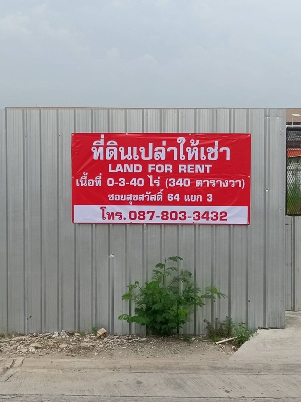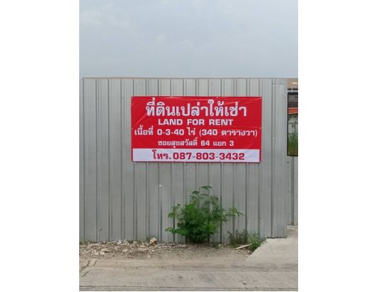 ให้เช่าที่ดินเปล่า 340 ตรว. สุขสวัสดิ์ 64 ซอย 3 เดินทางสะดวก ใกล้ทางด่วน