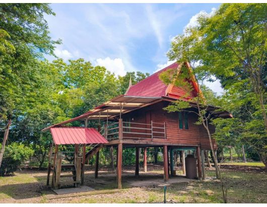 มีบ้านพัก 9 หลัง สร้างจากไม้สักทอง ไม้มะค่า ไม้ประดู่ และไม้เนื้อแข็งอื่นๆ พร้อมอุปกรณ์ครบ