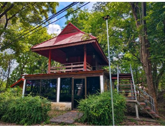 พร้อมเรือนเอนกประสงค์ชั้นบนเป็นเรือนไทยชั้นล่างเป็นห้องกระจก มีโรงรถชั้นเดียวจอดรถได้ 10 คัน