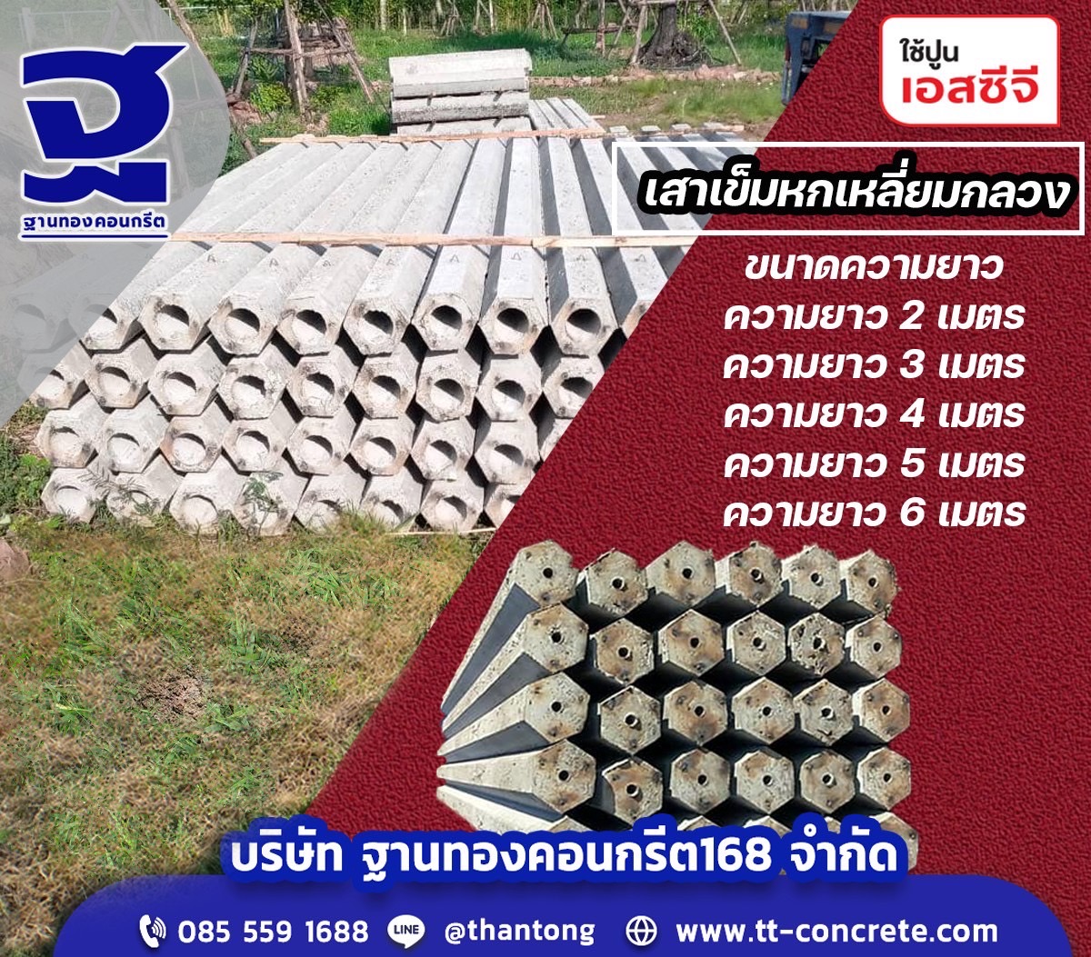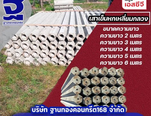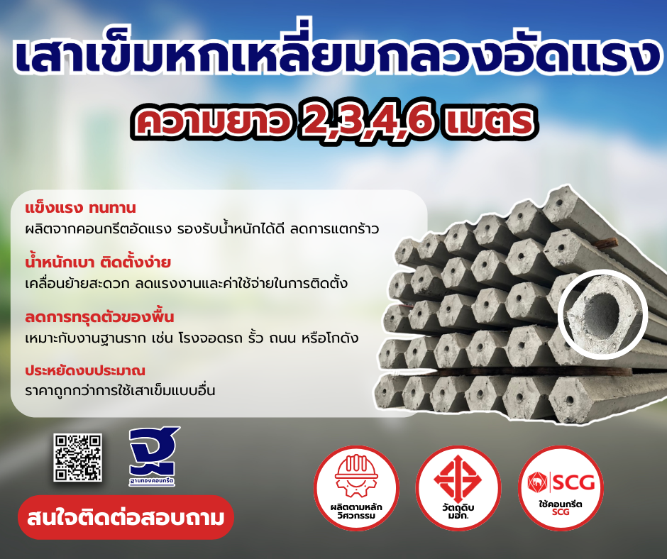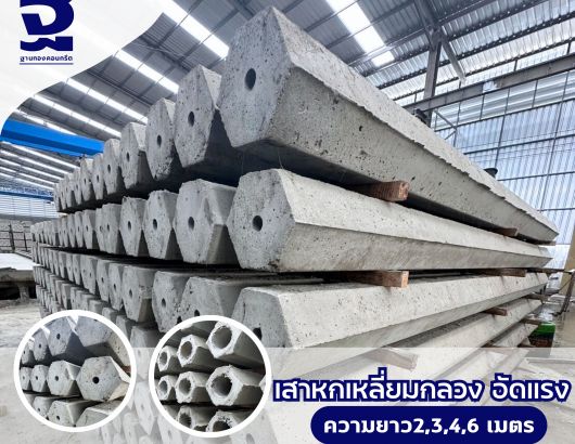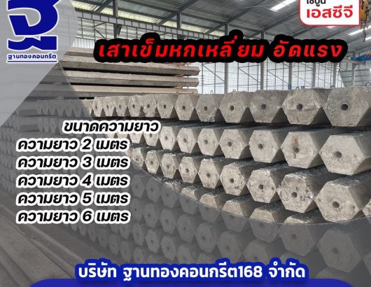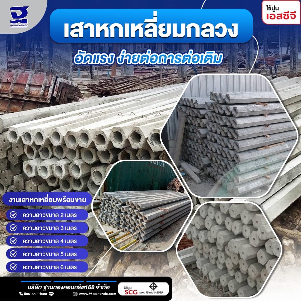 เสาเข็มหกเหลี่ยมกลวง มีขนาดความยาวตั้งแต่ 1-6 เมตร
