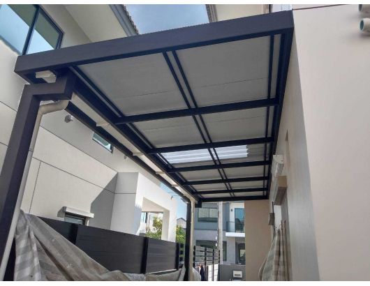 4.หลังคาโพลิคาร์บอนเนตชนิดตัน มีความหนา 2.5-3 มิล หลังคากระจายแสงได้ดี ป้องกันยูวี 94% กันความร้อนขึ้นอยู่กับสีแผ่น ลักษณะแผ่นคล้ายกระหนาใส มีแผ่นตันเรียบและดันผิวเปลือกส้ม เหมาะกับติดตั้งเป็นกันสาดหน้าบ้าน หน้าอาคาร โรงจอดรถ หลังคาคลุมสระว่ายน้ำ เมื่อต่อเติมหลังคาโพลิคาร์บอนเนตชนิดตัน โครงสร้างโมเดิร์น ทำให้หน้างาน มีความทันสมัยยิ่งขึ้น
