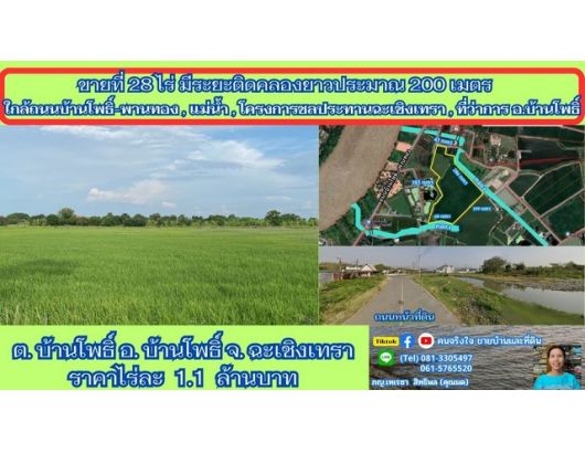 ขายที่ติดคลอง 28 ไร่ ต.บ้านโพธิ์ อ.บ้านโพธิ์ จ.ฉะเชิงเทรา