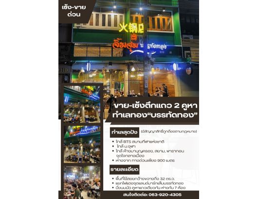 เซ้งตึกแถว 2 คูหา ทำเลทอง ย่านบรรทัดทอง