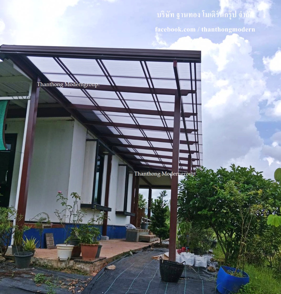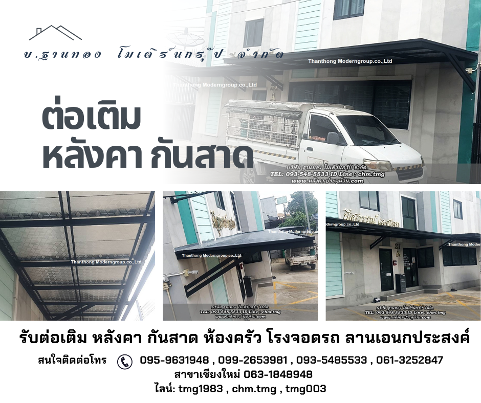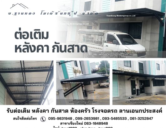 บริการงานต่อเติมหลังคาโครงสร้างเหล็ก กันสาดหน้าบ้าน สร้างโกดัง โรงจอดรถ หลังคาดาดฟ้า ลานซักล้าง ห้องครัว พื้นที่อเนกประสงค์ 093-548-5533