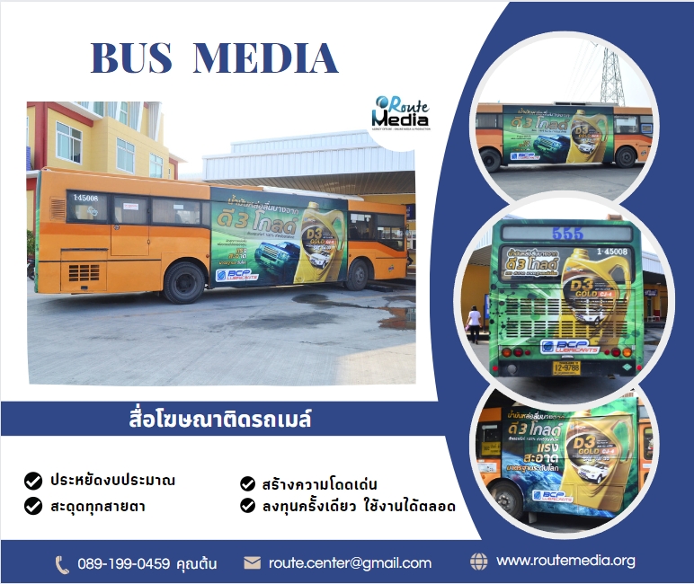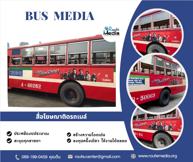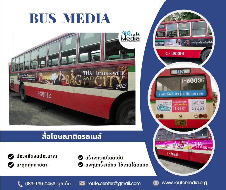 สื่อโฆษณาติดรถเมล์ ถือเป็นสื่อโฆษณาเคลื่อนที่ ที่สร้างความน่าจดจำให้กับผู้พบเห็น เป็นการย้ำเตือนภาพลักษณ์สินค้าและบริการ เนื่องจาก สื่อติดรถเมล์ สามารถทำงานและเคลื่อนที่ได้ในเวลาเดียวกัน ทั้งยังมีเส้นทางเดินรถที่หลากหลายครอบคลุมทั่วทุกพื้นที่ทั้งกรุงเทพฯ และปริมณฑล ไม่ว่าจะเป็นใจกลางเมือง ย่านธุรกิจ ตลาด แหล่งชุมชนที่มีผู้คนอาศัยอยู่อย่างหนาแน่น และมีจำนวนผู้ใช้บริการเป็นจำนวนมากในแต่ละวัน ดังนั้น สื่อโฆษณารถเมล์ จึงเป็นการตอบโจทย์การนำเสนอสินค้าและบริการได้อย่างมีประสิทธิภาพ เหมาะแก่การทำการตลาด ได้เป็นอย่างดี ได้รับการตอบรับเร็วจากกลุ่มลูกค้าและที่สำคัญ ราคาสื่อคุ้มค่า สอบถามข้อมูลรายละเอียดเส้นทางและอัตราค่าบริการที่ได้ที่