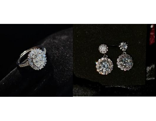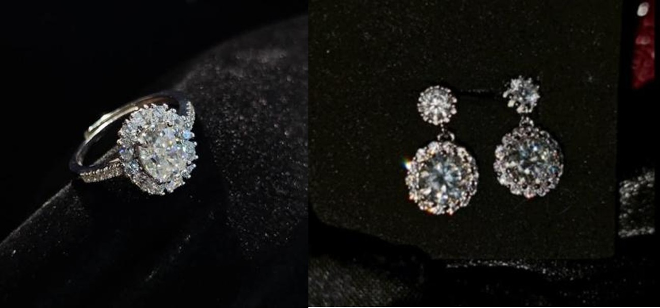 ชุดใส่ออกงาน ต่างหูเพชรและแหวนเพชร เหมาะสำหรับคุณผู้หญิง หรือไปกิจกรรมต่างๆได้ ดูหรู ดูแพง-ปุอามี่ Diamond Lap Rama2 (083-2469526)