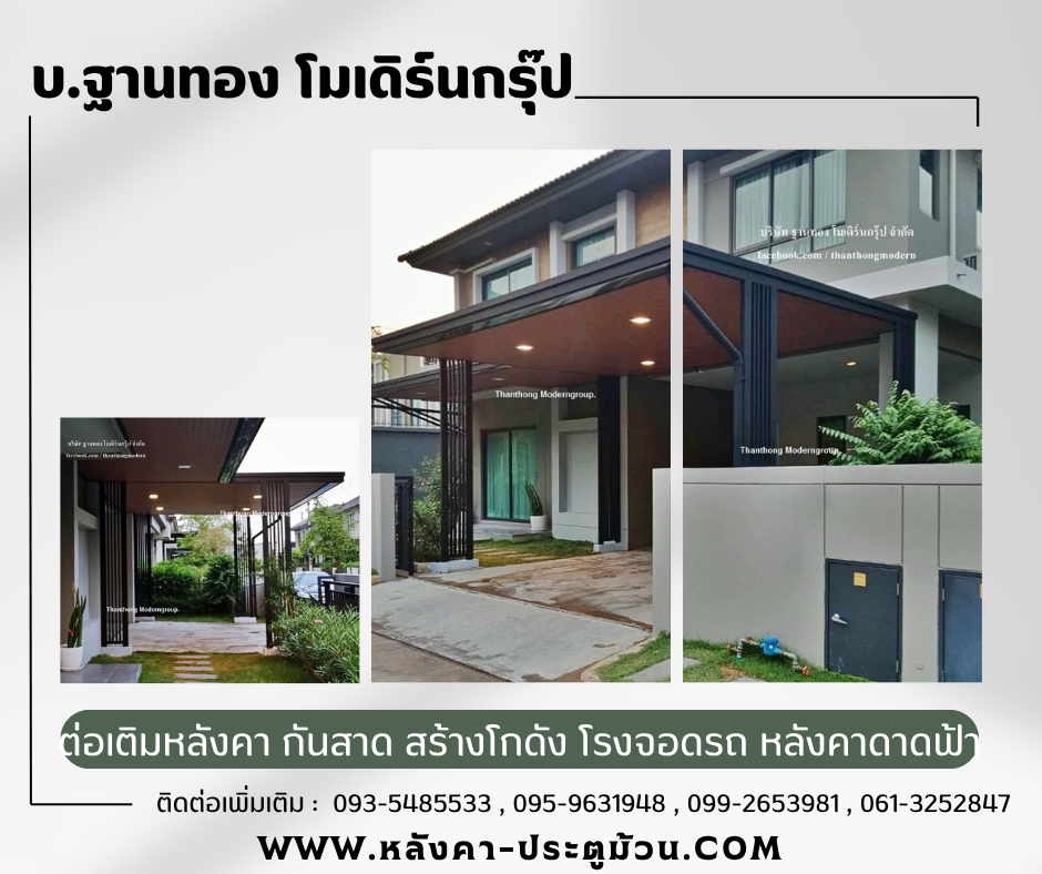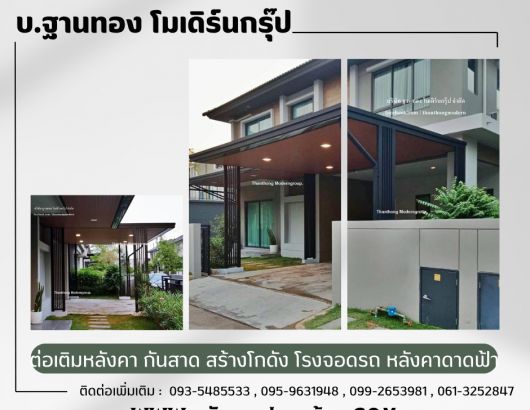 บริการงานต่อเติมหลังคาโครงสร้างเหล็ก กันสาดหน้าบ้าน สร้างโกดัง โรงจอดรถ หลังคาดาดฟ้า ลานซักล้าง ห้องครัว พื้นที่อเนกประสงค์ 093-5485533