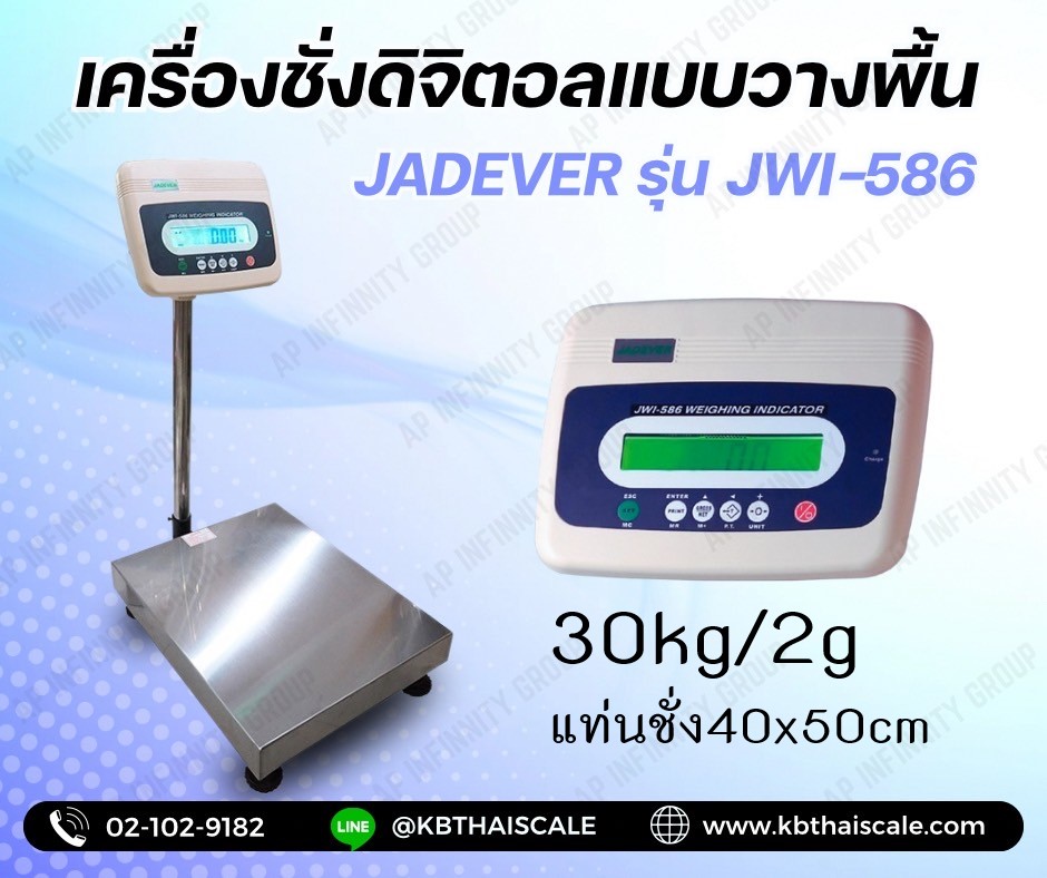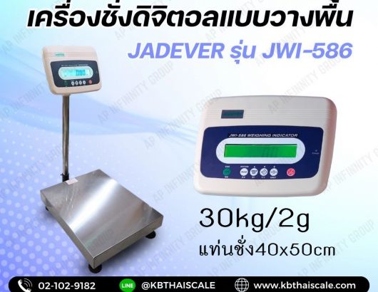 เครื่องชั่งวางพื้น30กิโล ตาชั่ง30กิโล ความละเอียด2g JADEVER JWI-586 ขนาดแท่นชั่ง 40x50cm.