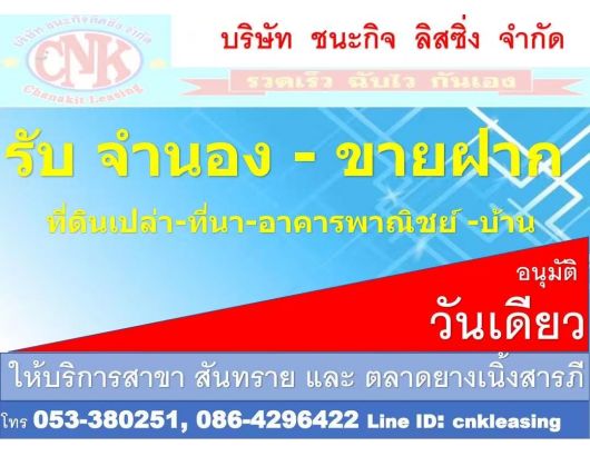 - เป็นบริษัท รับจำนอง ขายฝาก ที่ดินเปล่า ที่นา ที่สวน บ้าน อพาร์ทเม้นท์