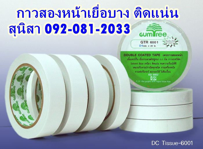 • กาวสองหน้าเนื้อทิชชู มีให้เลือกหลากหลายชนิดตามความต้องการ ตั้งแต่แบบธรรมดาถึงแบบติดถาวร รวมถึงมี UL เหมาะสำหรับงานทำโลห์ งานถ้วยรางวัลวงการอิเลคทริค อิเลคทรอนิกส์ งานหัตถกรรม การเม้นท์ งานปักและเครื่องหนัง