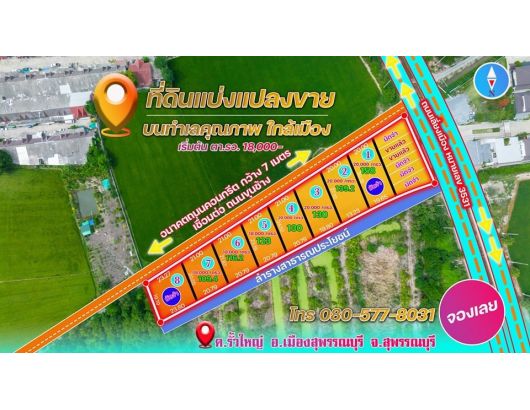 ขายที่ดินทำเลทองแบ่งแปลงขาย มีทั้งที่ดินเปล่า และที่ดินพร้อมสร้างบ้าน สุพรรบุรี