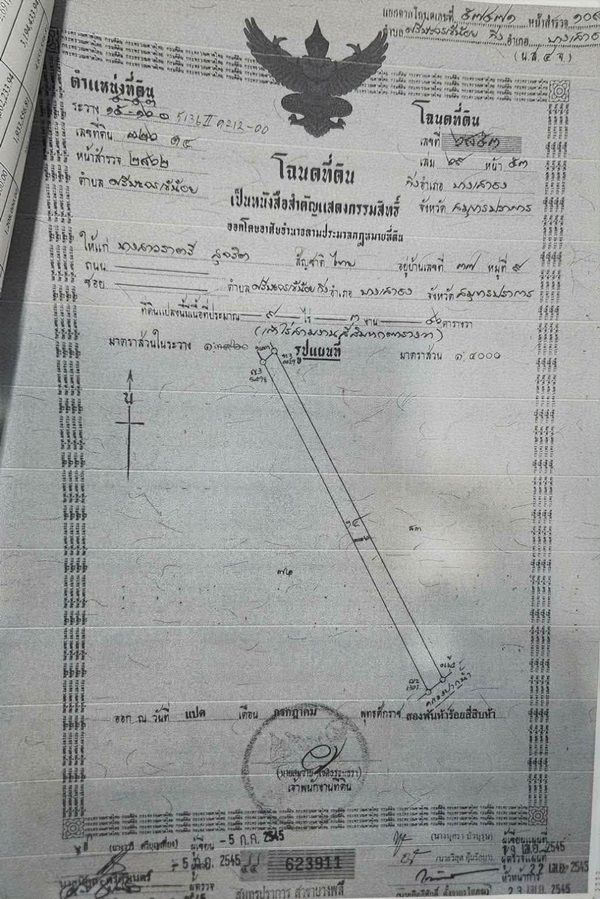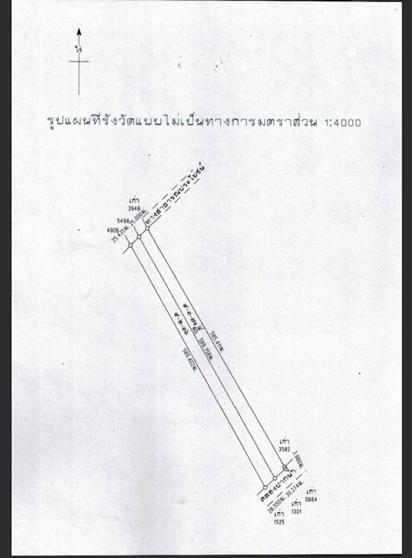 - ที่ดินรูปสี่เหลี่ยมผืนผ้า =ด้านกว้าง(ติดถนนคอนกรีต/หัวที่)=50.435 เมตร ,ด้าน(ซ้าย)=