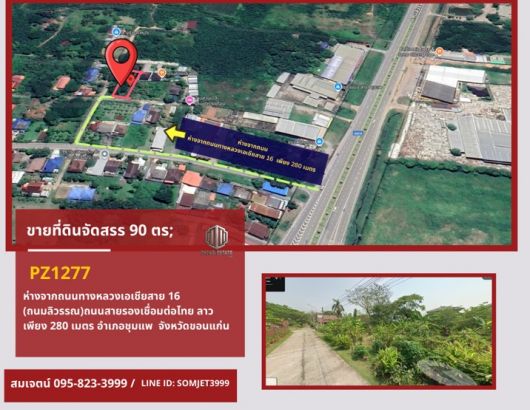 PZ1277 : ขายที่ดินจัดสรร 90 ตรว. ห่างจากถนนทางหลวงเอเชียสาย 16 (ถนมลิวรรณ) ถนนสายรองเชื่อมต่อไทย ลาว เพียง 280 เมตร ตำบลโนนอุดม อำเภอชุมแพ จังหวัดขอนแก่น