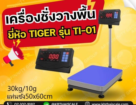 เครื่องชั่งตั้งพื้น ชั่งได้สูงสุด 100 กิโลกรัม ค่าความละเอียด 10 กรัม ฐานเครื่องชั่ง 50*60cm Tiger. TP–01