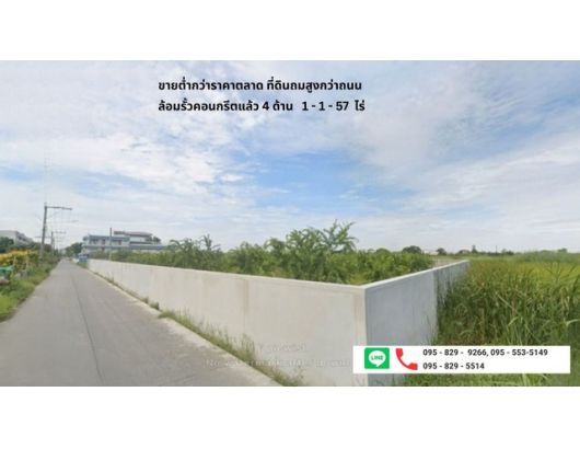 - ที่ดินถมสูง ล้อมรั้วทำด้วยคอนกรีต พรีเมี่ยม