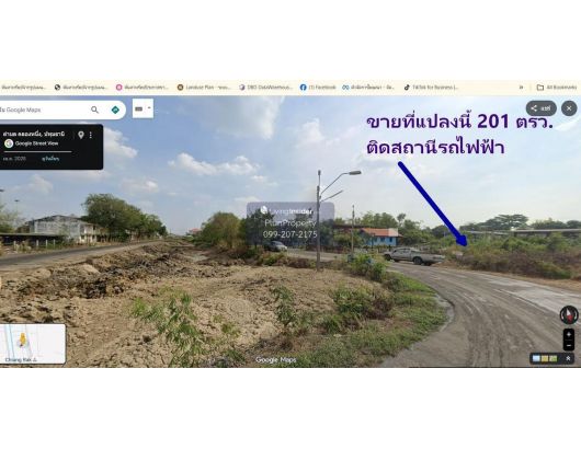 ขายที่ดิน 201 ตรว. ถมแล้ว ติดถนนเมน ติดสถานีรถไฟฟ้าสายสีแดงเข้ม ส่วนต่อขยาย สถานีเชียงราก