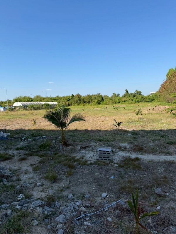 หน้ากว้าง: ประมาณ 20 เมตร, ลึก: ประมาณ 180 เมตร ระดับที่ดินเท่าพื้นถน