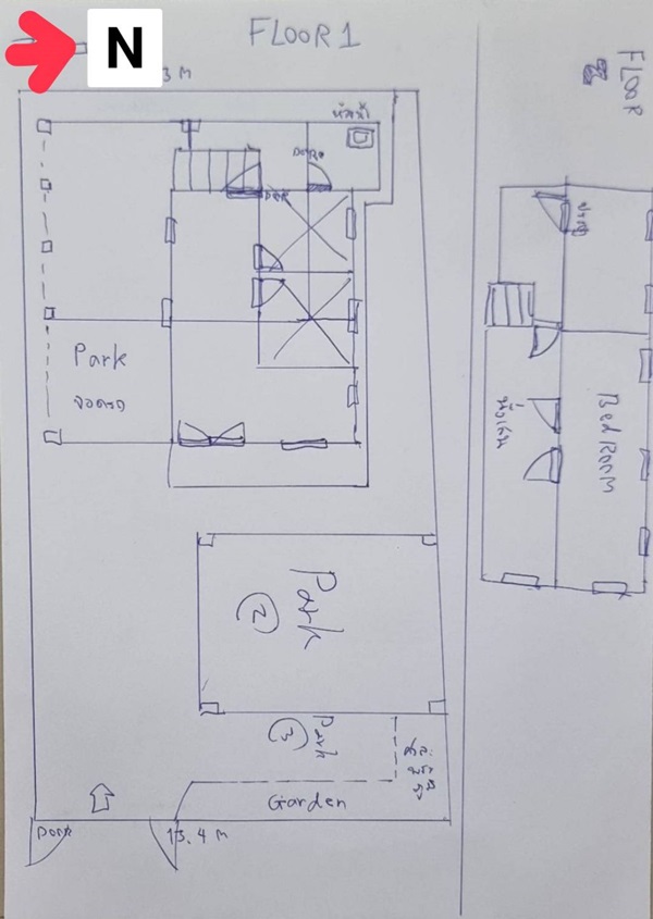 บ้าน 2 ชั้น 3 ห้องนอน 1 ห้องน้ำ