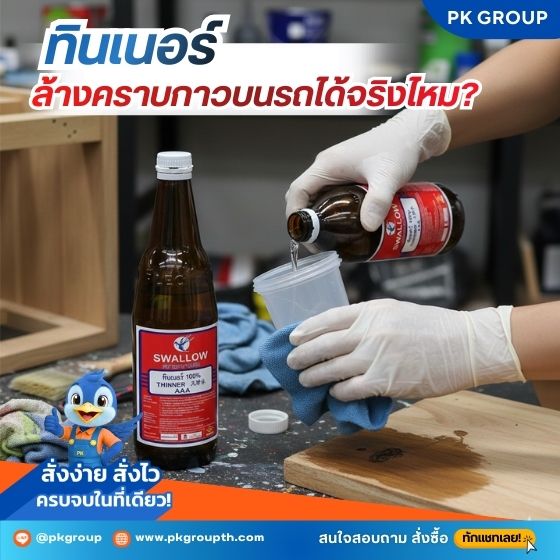 คราบกาวบนรถใช้ทินเนอร์ล้างได้จริงไหม?