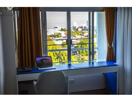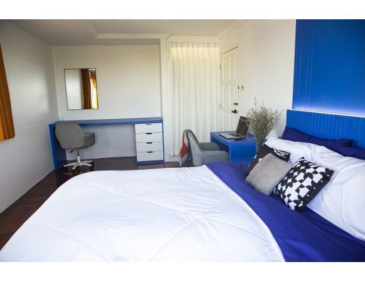 Fully furnished with high-quality mattress, built-in furniture, and real wood flooring.
