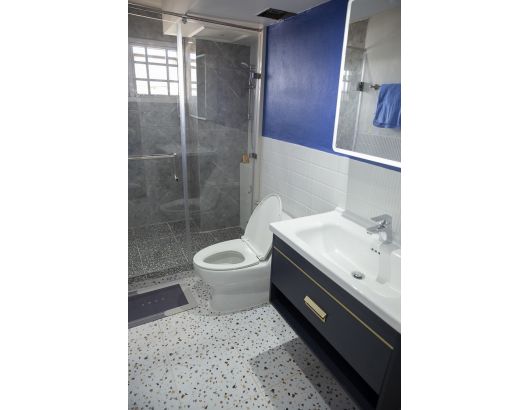 2 private bedrooms, 1 shower room with separate wet/dry zones and tempered glass enclosure.