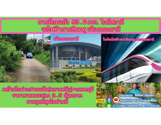 ขายที่ถมแล้ว 93.6 ตรว. ใกล้สถานีรถไฟฟ้าสายสีชมพู เมืองทองธานี ต.บ้านใหม่ อ.ปากเกร็ด(ตลาดขวัญ) จ.นนทบุรี