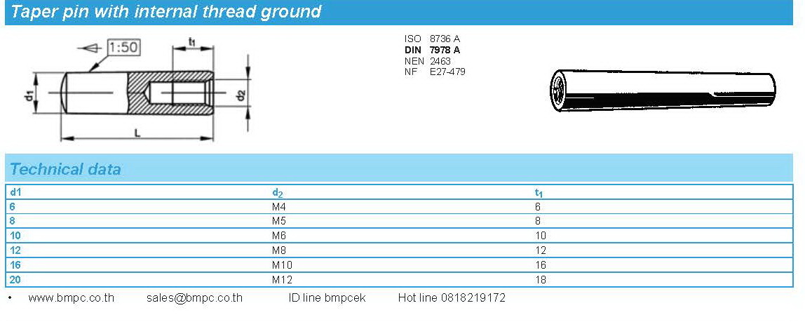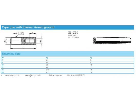 Taper pin with internal thread DIN7878A