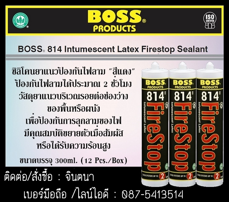 จินตนา T.087-5413514 จำหน่ายBOSS 814 Firestop Sealant ซิลิโคนกันไฟ วัสดุยาแนวป้องกันไฟลามได้นาน 2 ชั่วโมง ยึดติดได้ดีทุกพื้นผิว