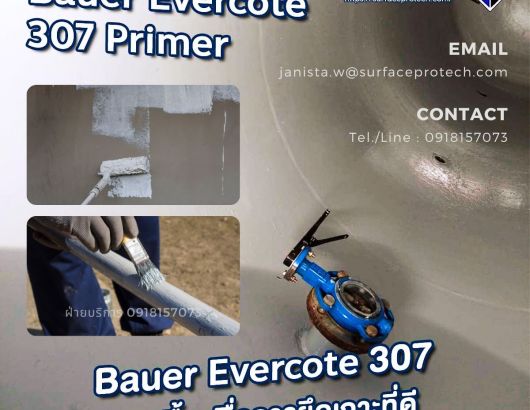 Bauer Evercote 307 Primer อีพ็อกซี่ไพรเมอร์ Solid 100% (A+B) มีเนื้อสีสูงมาก (Epoxy High Solid) ใช้สำหรับทาพื้นผิวโลหะเป็นชั้นรองพื้นเพิ่มการยึดเกาะ ขนาดบรรจุ : 5 kg / set (สีอลูมิเนียมเงากึ่งด้าน)