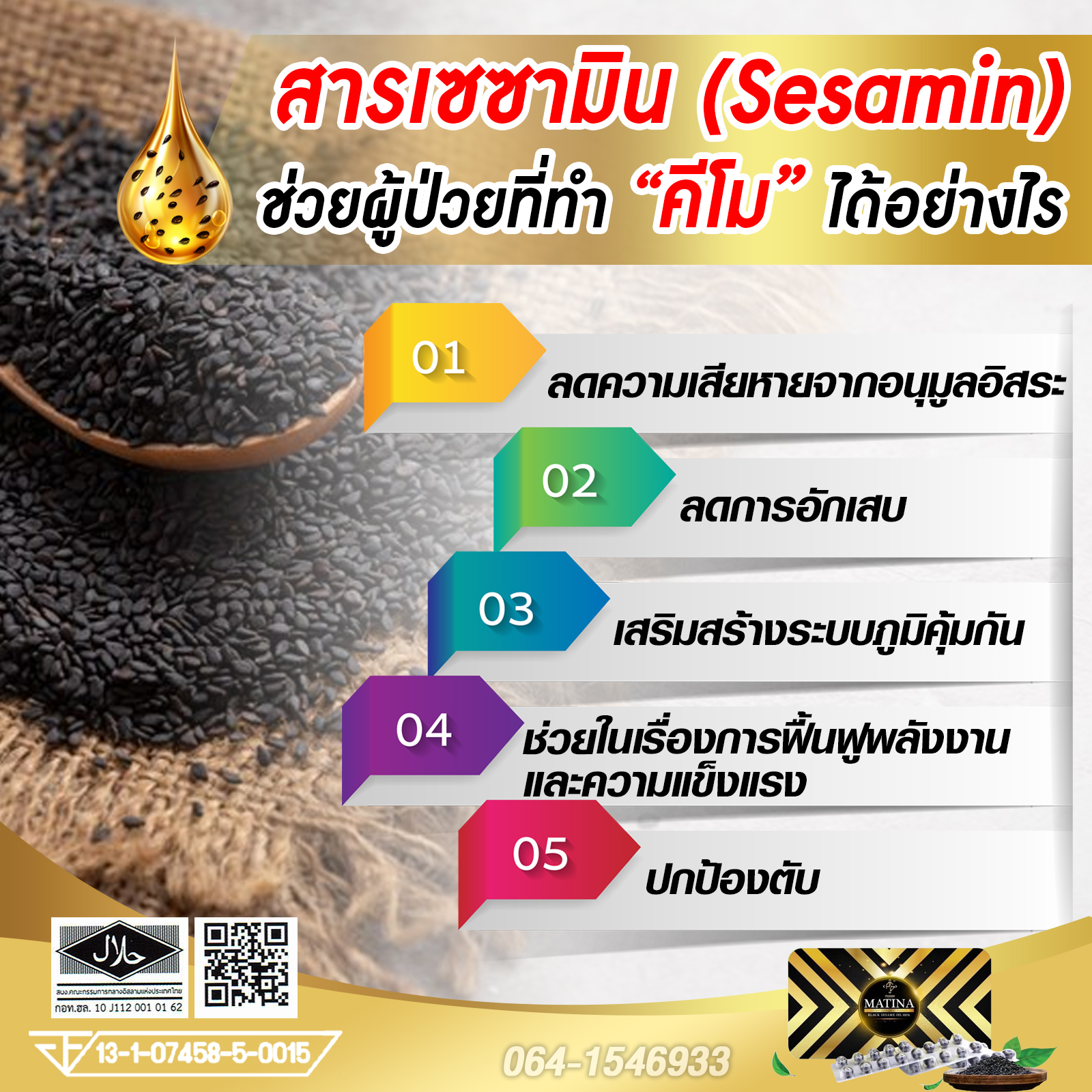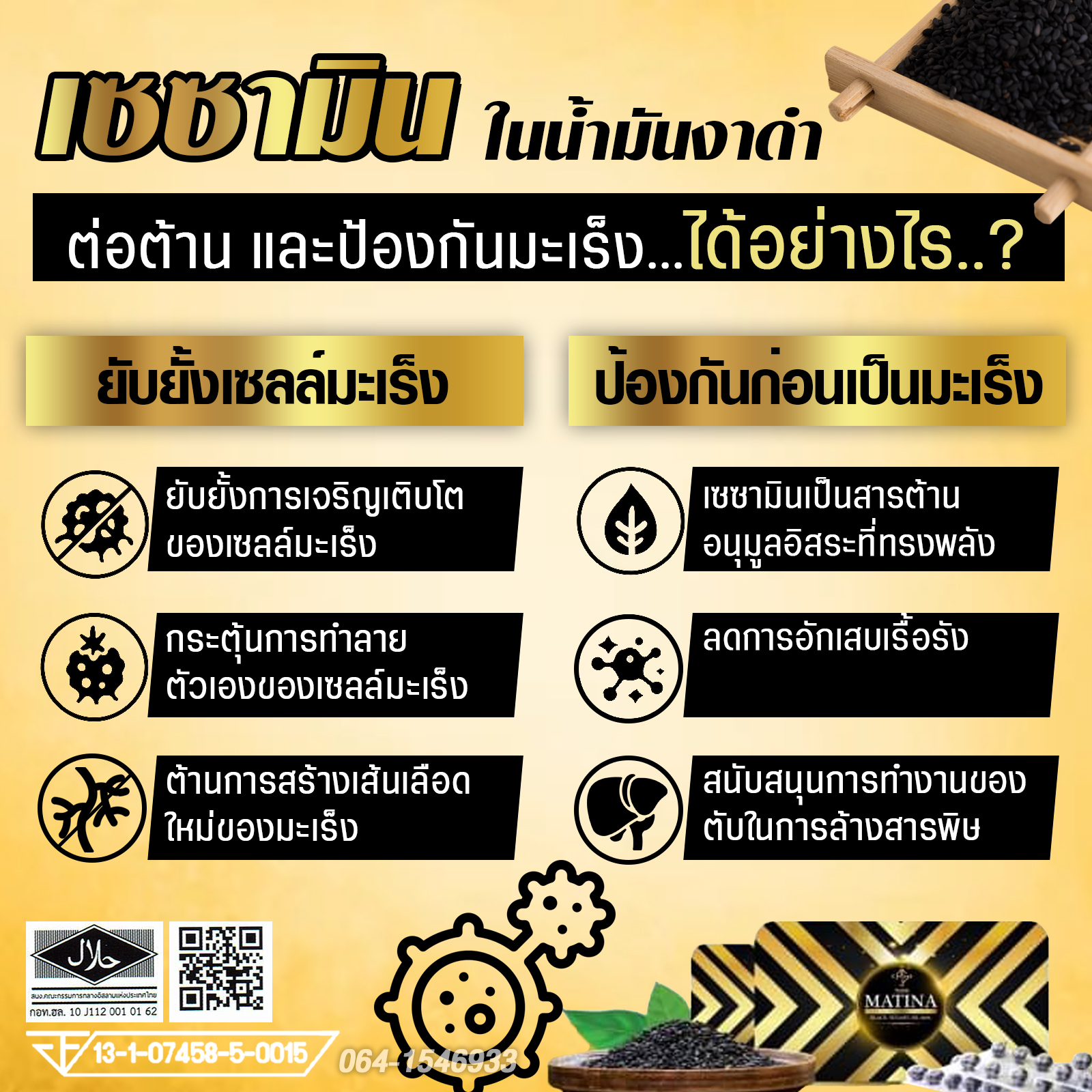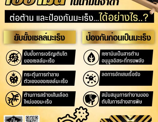 ✨ สารเซซามินซึ่งมีฤทธิ์ต้านมะเร็งบางชนิด ช่วยฟื้นฟูและป้องกันเซลล์ที่เสื่อมสภาพให้ทำงานเป็นปกติ