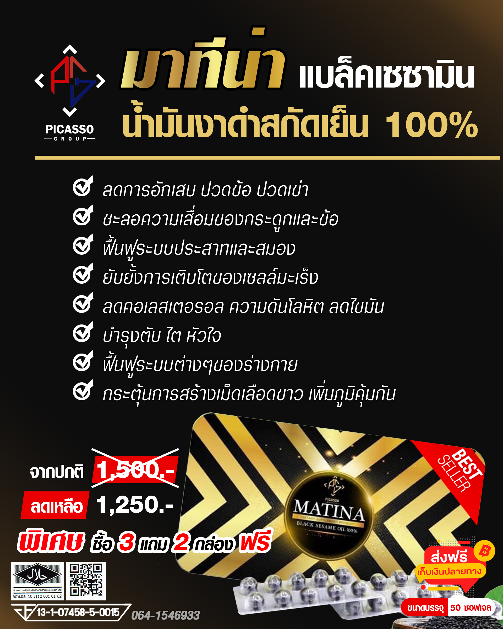 ✨ น้ำมันงาดำสกัดเย็น 500 มก