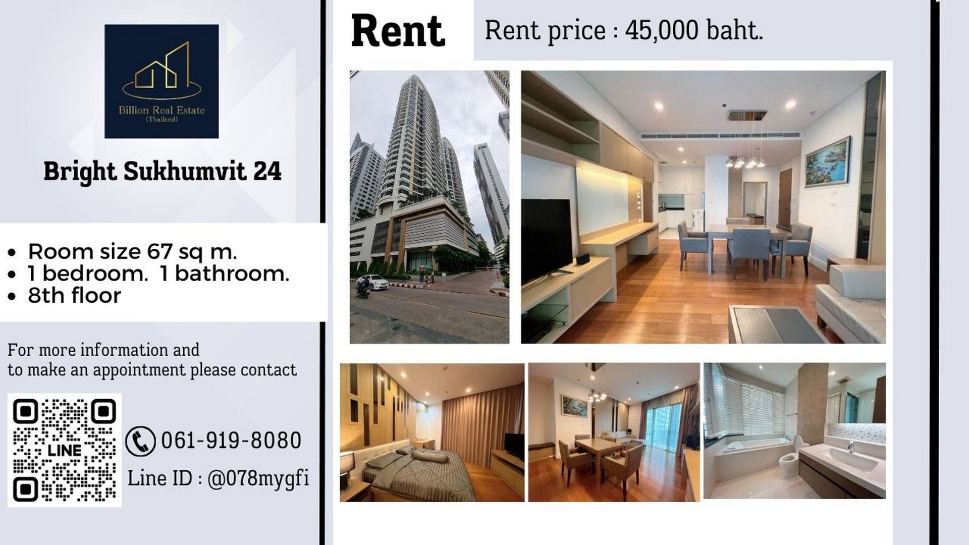 Rent Condo : Bright Sukhumvit 24 Condo 1 Bed Only 45,000 Bath