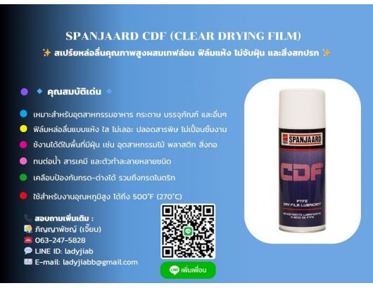 SPANJAARD CDF (Clear Dry Film) สเปรย์หล่อลื่นชนิดฟิล์มแห้ง เคลือบป้องกันทนทานต่อกรดเกือบทั้งหมด (รวมถึงกรดไนตริก)