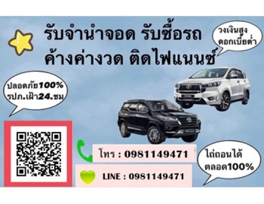 (--->ขออภัย เราไม่รับรถที่เจ้าของรถไม่ได้มาเอง,ไม่รับรถเช่า, ไม่รับรถขโมย, และรถผิดกฏหมายทุกชนิด<--- )
