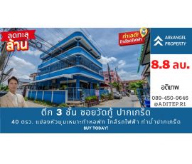 ขายด่วน! ตึก 3 ชั้น 40 ตรว. แปลงหัวมุม ซ.วัดกู้ ปากเกร็ด ทำเลทอง เหมาะทำหอพัก ใกล้รถไฟฟ้าสายสีชมพู! ท่าน้ำปากเกร็ด